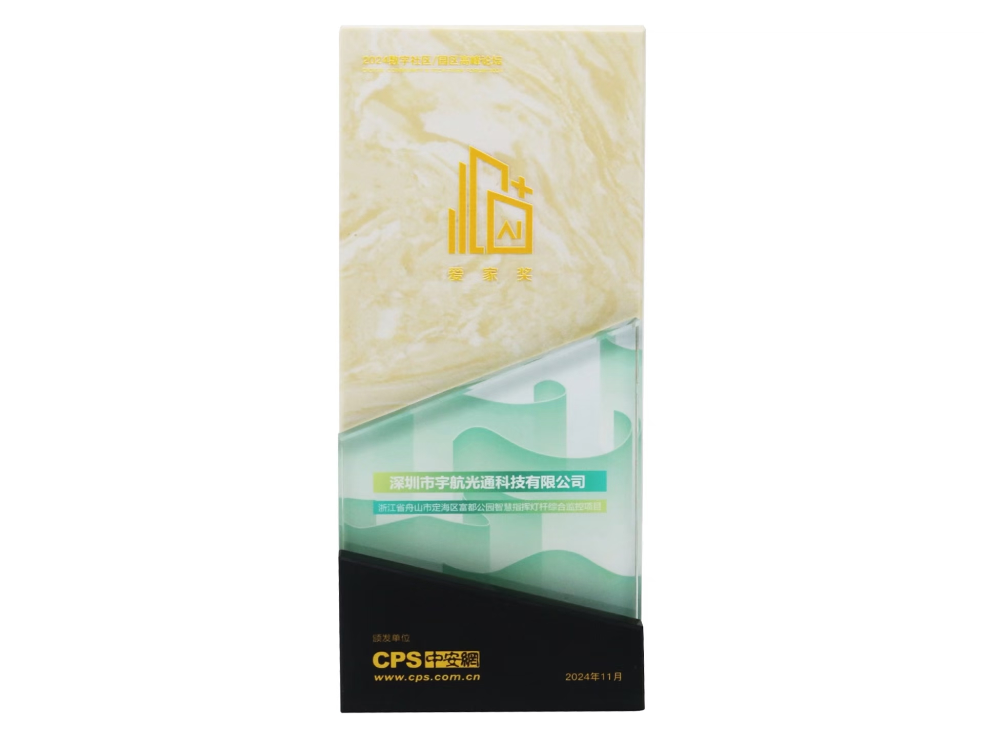 會上,宇航全國產工業交換機的一個智慧越園區項目榮獲了2024數字社區/園區“愛家獎”,這一殊榮不僅是對項目成就的認可,也是對宇航全國產工業交換機創新能力和技術實力的肯定。宇航工業交換機聯席總經理劉偉成代表宇航領獎,深圳市政協委員、世界數字城市大會秘書長、深圳市智慧城市產業協會執行會長楊鵬博士為其頒發了獎杯,對宇航在全國產工業交換機領域取得的突出成績表示祝賀,并合影留念。