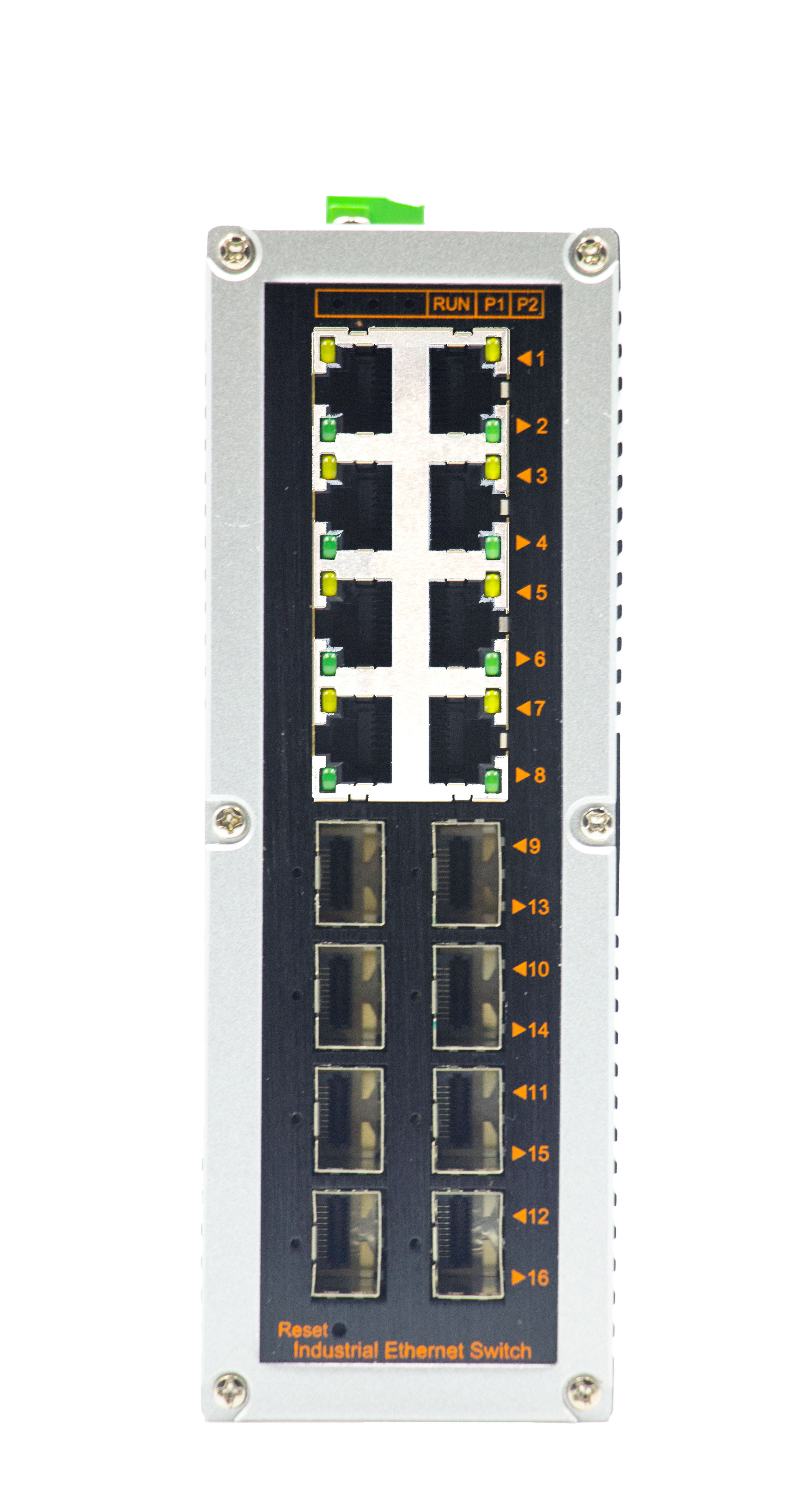 網管型千兆8光8電YH688GS-M-SFP工業以太網交換機,產品符合FCC、CE、ROHS標準。支持8個千兆光口和8個千兆電口,支持一路console口;支持工業現場所需的以太網二層協議,保證通信網絡的穩定性;該系列交換機采用低功耗、無風扇設計,確保無噪聲干擾,同時支持-40~85℃工作溫度和良好的EMC電磁兼容性能,保證在惡劣的工業環境中保持穩定的工作,為工廠自動化,智能交通,視頻監控等工業應用領域組建快速穩定的網絡終端接入網絡提供安全可靠的解決方案。護等級的外殼及 LED 指示燈,使之成為一個即插即用的工業級設備,為用戶的以太網設備聯網提供可靠、便捷的解決方案。